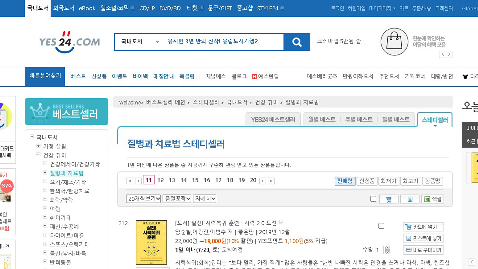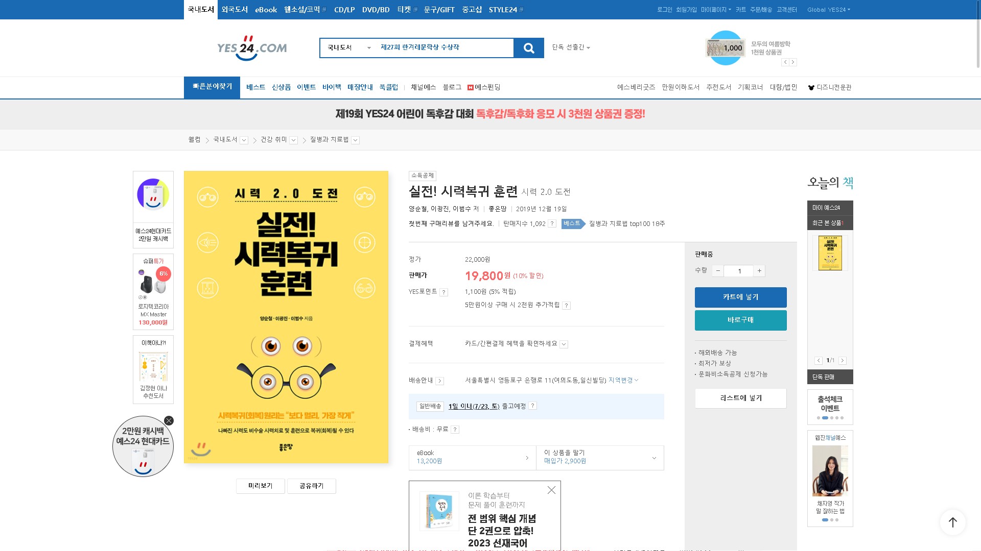 실전시력복귀훈련 교보문고 베스트셀러 2022년 7월 3주 23일 질병치료예방 주간 베스트 184위 눈건강 14위