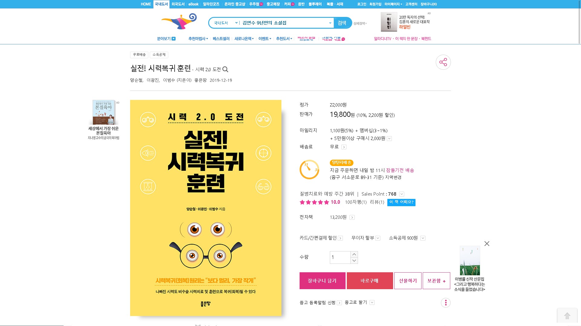 알라딘에서 실전!시력복귀훈련을 구매하시는 분은 아래링크를 참고 하시면 됩니다.