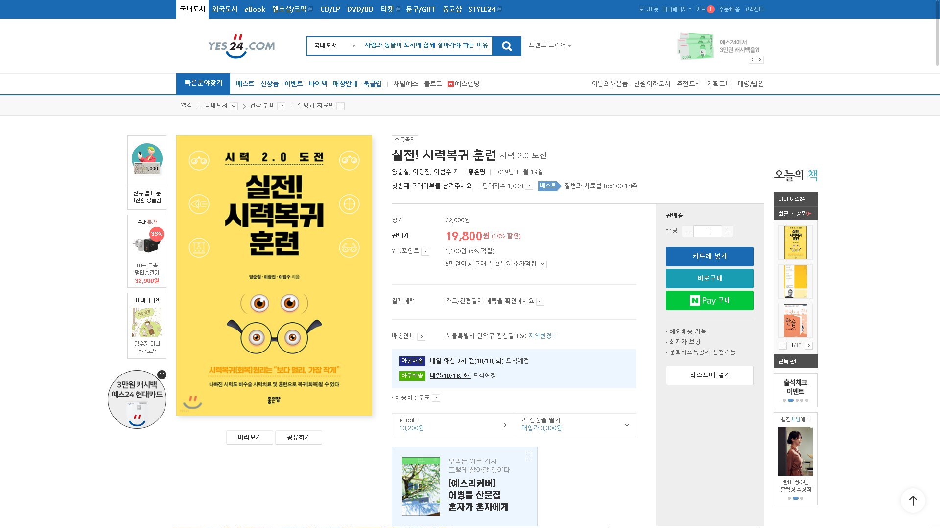 예스24에서 실전!시력복귀훈련을 구매하시는 분은 아래링크를 참고 하시면 됩니다.