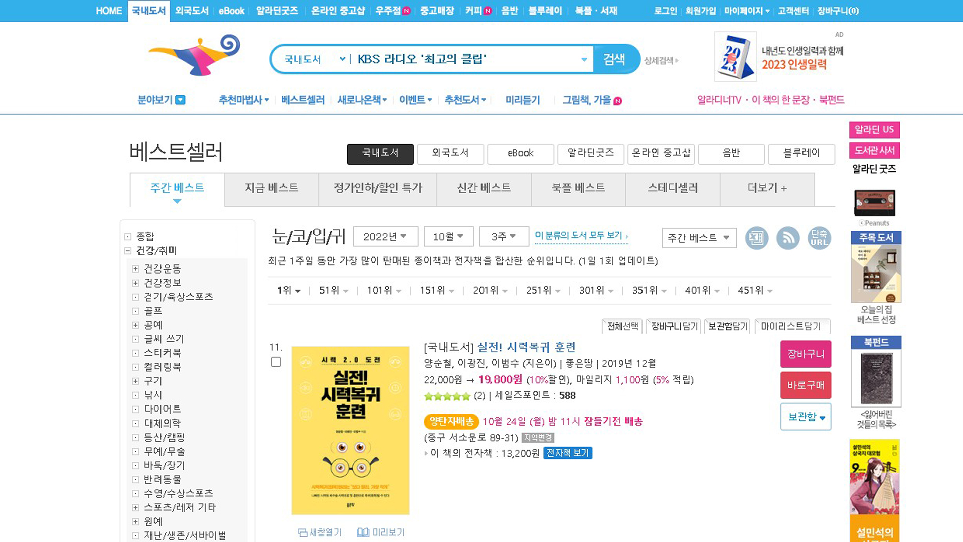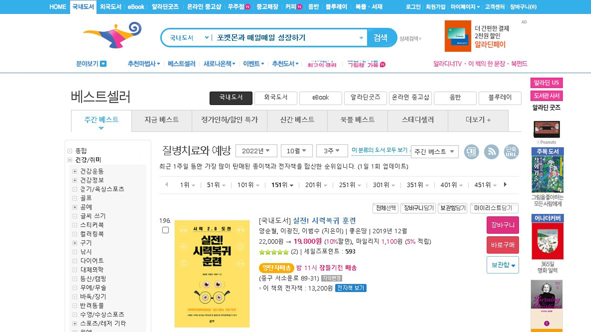 실전시력복귀훈련 알라딘 베스트셀러 2022년 10월 2주 22일 질병치료와예방 베스트셀러 196위입니다.