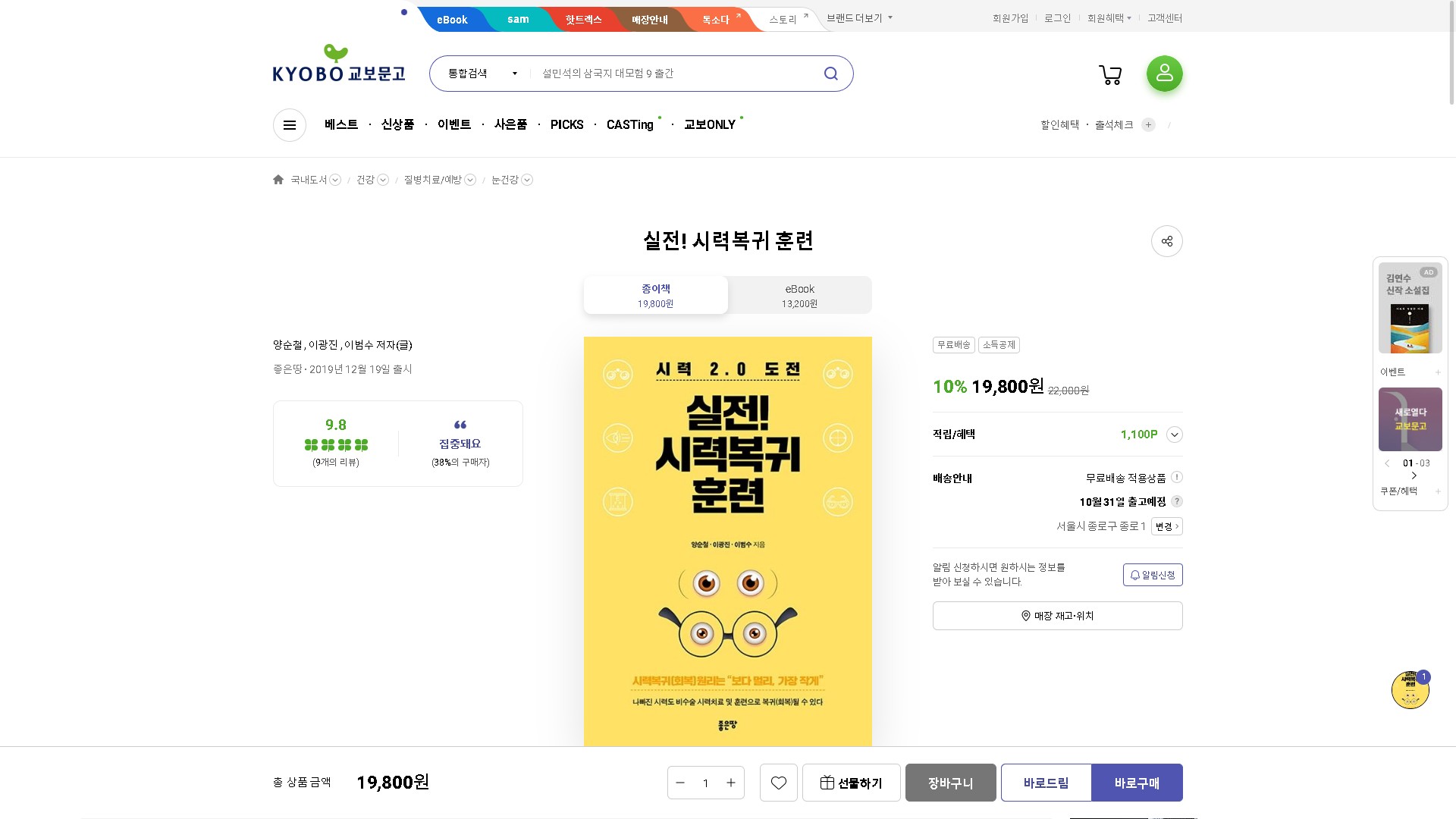 교보문고에서 실전!시력복귀훈련을 구매하시는 분은 아래링크를 참고 하시면 됩니다.