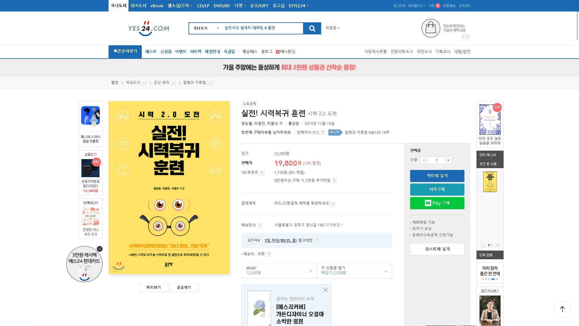 예스24에서 실전!시력복귀훈련을 구매하시는 분은 아래링크를 참고 하시면 됩니다.