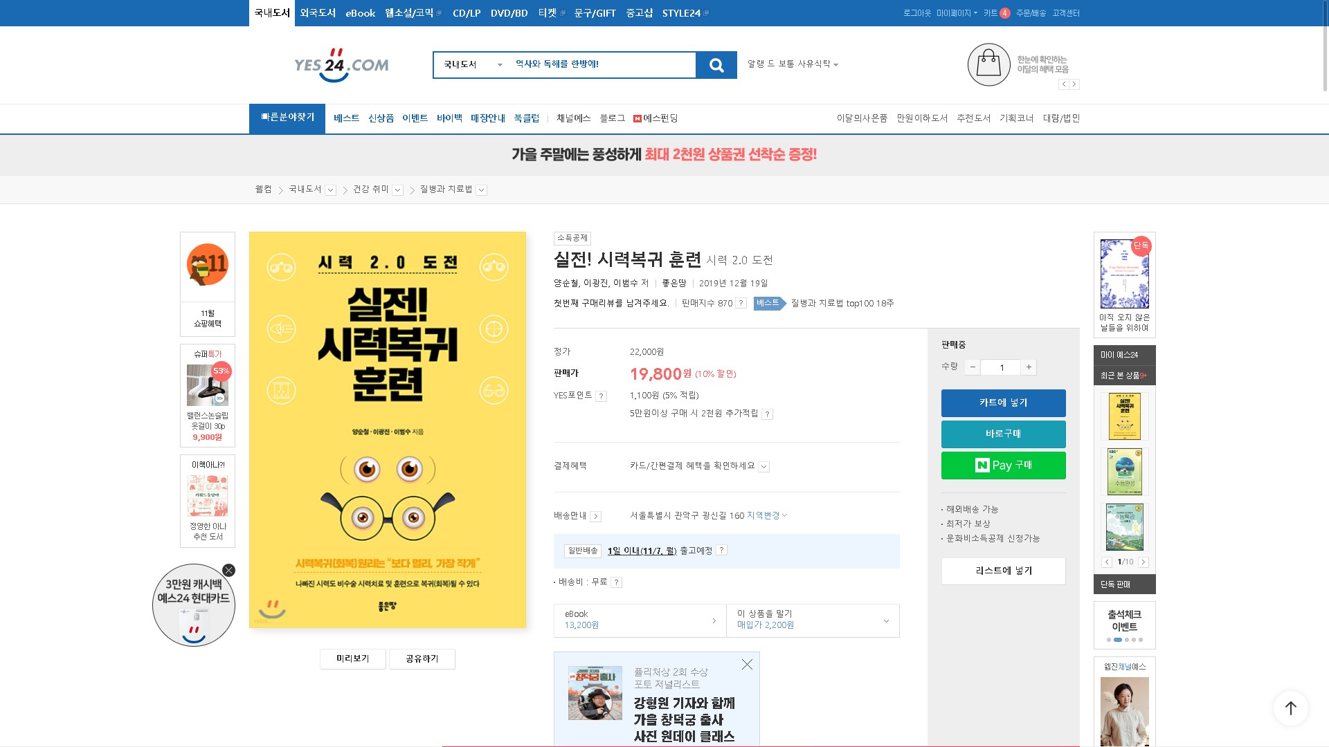 예스24에서 실전!시력복귀훈련을 구매하시는 분은 아래링크를 참고 하시면 됩니다.