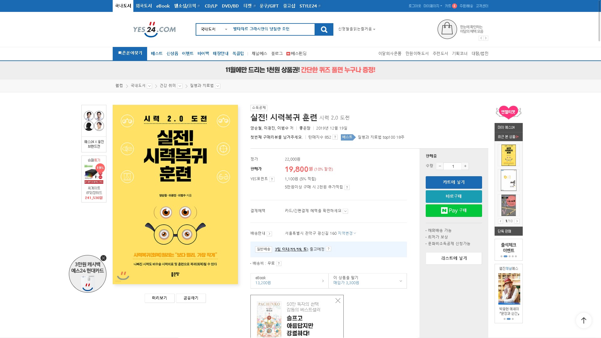 예스24에서 실전!시력복귀훈련을 구매하시는 분은 아래링크를 참고 하시면 됩니다.