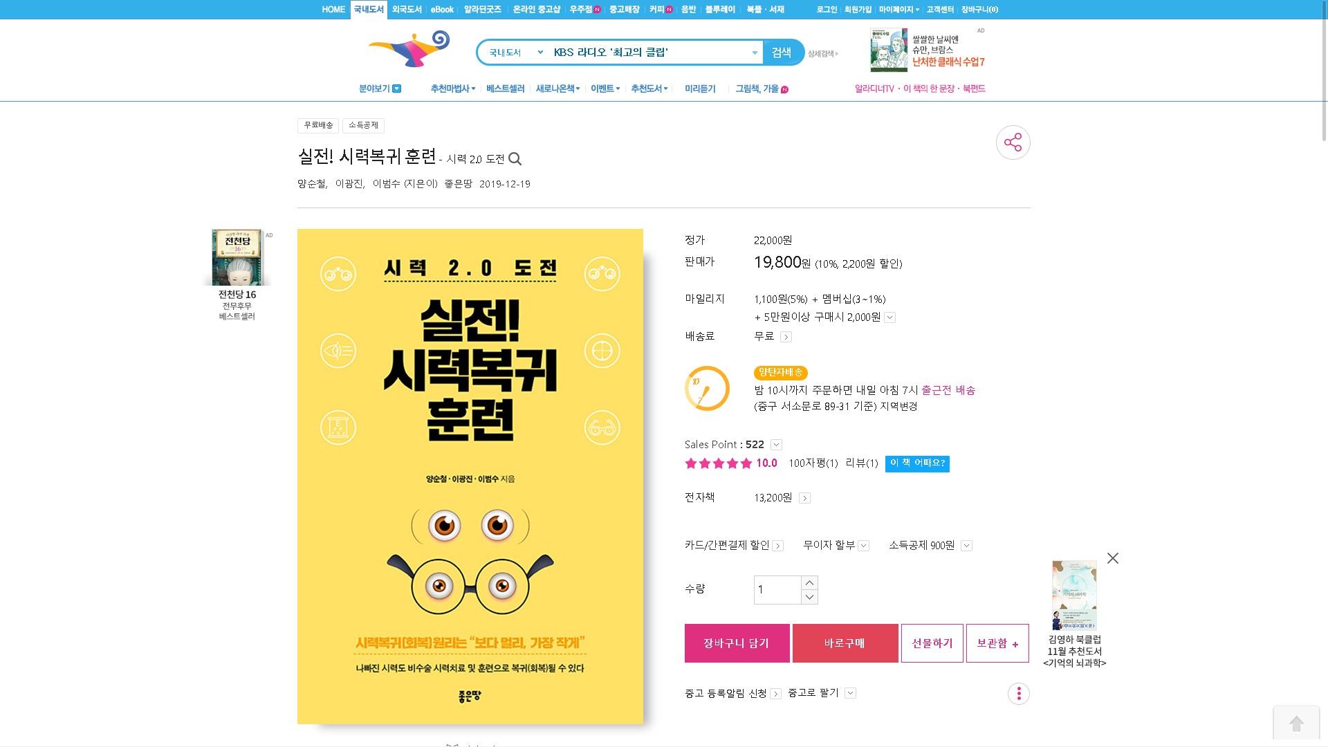 알라딘에서 실전!시력복귀훈련을 구매하시는 분은 아래링크를 참고 하시면 됩니다.