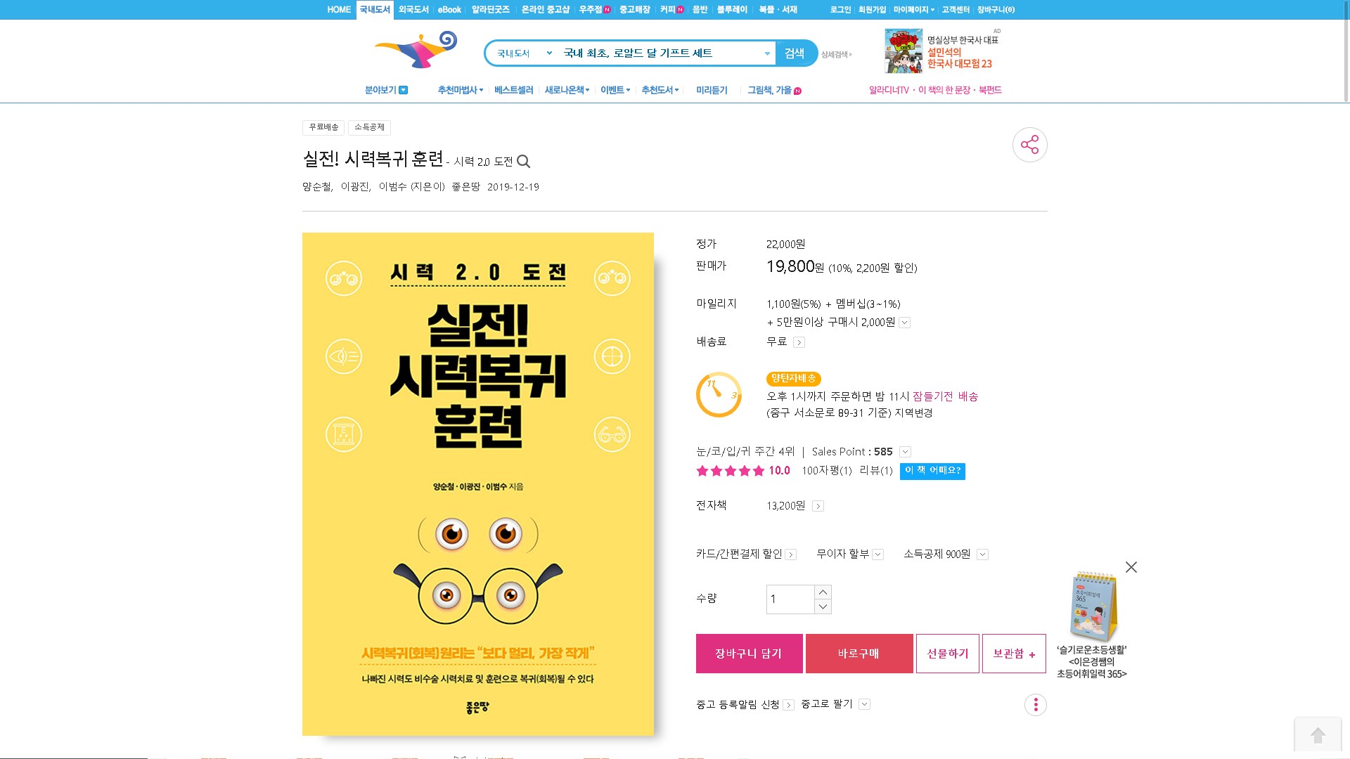 알라딘에서 실전!시력복귀훈련을 구매하시는 분은 아래링크를 참고 하시면 됩니다.