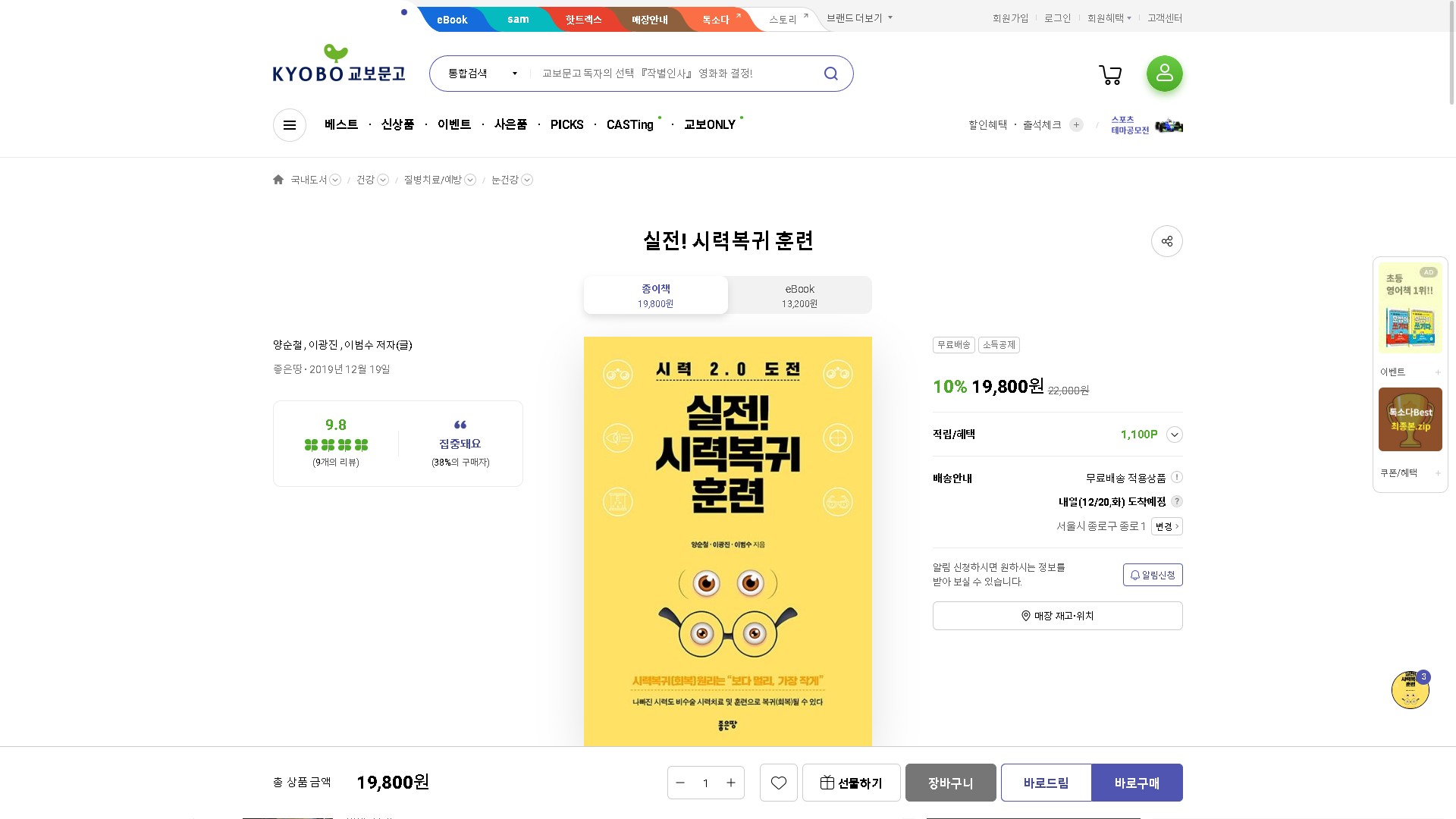 교보문고에서 실전!시력복귀훈련을 구매하시는 분은 아래링크를 참고 하시면 됩니다.
