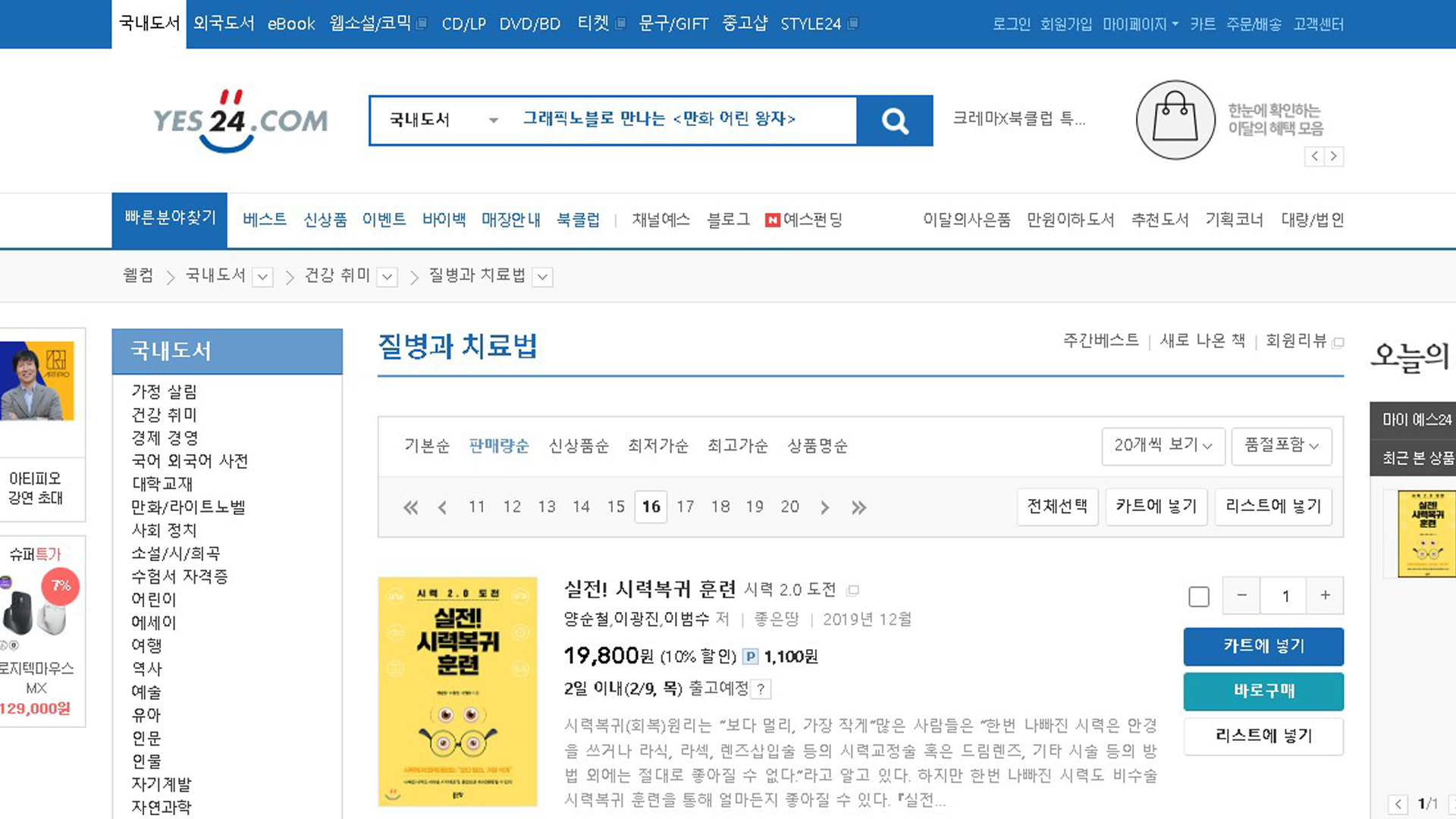 예스24에서 실전!시력복귀훈련을 구매하시는 분은 아래링크를 참고 하시면 됩니다.