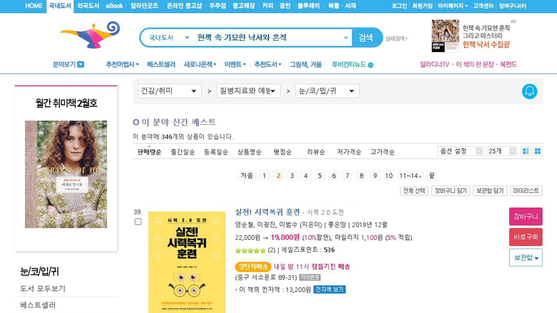 실전시력복귀훈련 알라딘 베스트셀러 2023년 2월 1주 11일 질병치료와예방 신간베스트셀러 544위, 눈코입귀 신간베스트셀러 39위