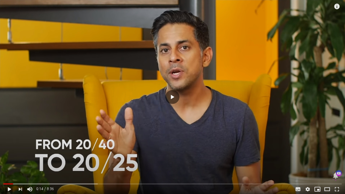 [영상/시력복귀훈련 체험 후기/해외 시력 훈련 사례]라식 후 근시 퇴행 2주만에 시력 0.5(20/40)에서 (20/25)0.8로 변화 된 해외 시력복귀(회복) 훈련 하는 비센 라키아니(Vishen Lakhiani) 첫 번째 영상 – 눈 시력좋아지는법, 시력복귀훈련