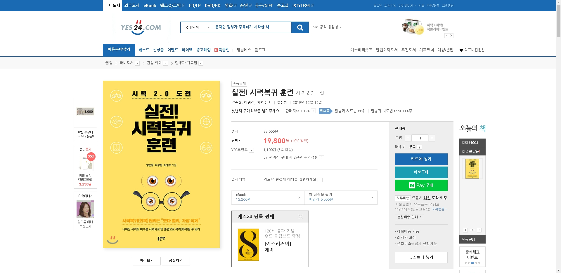 예스24에서 실전!시력복귀훈련을 구매하시는 분은 아래링크를 참고 하시면 됩니다.