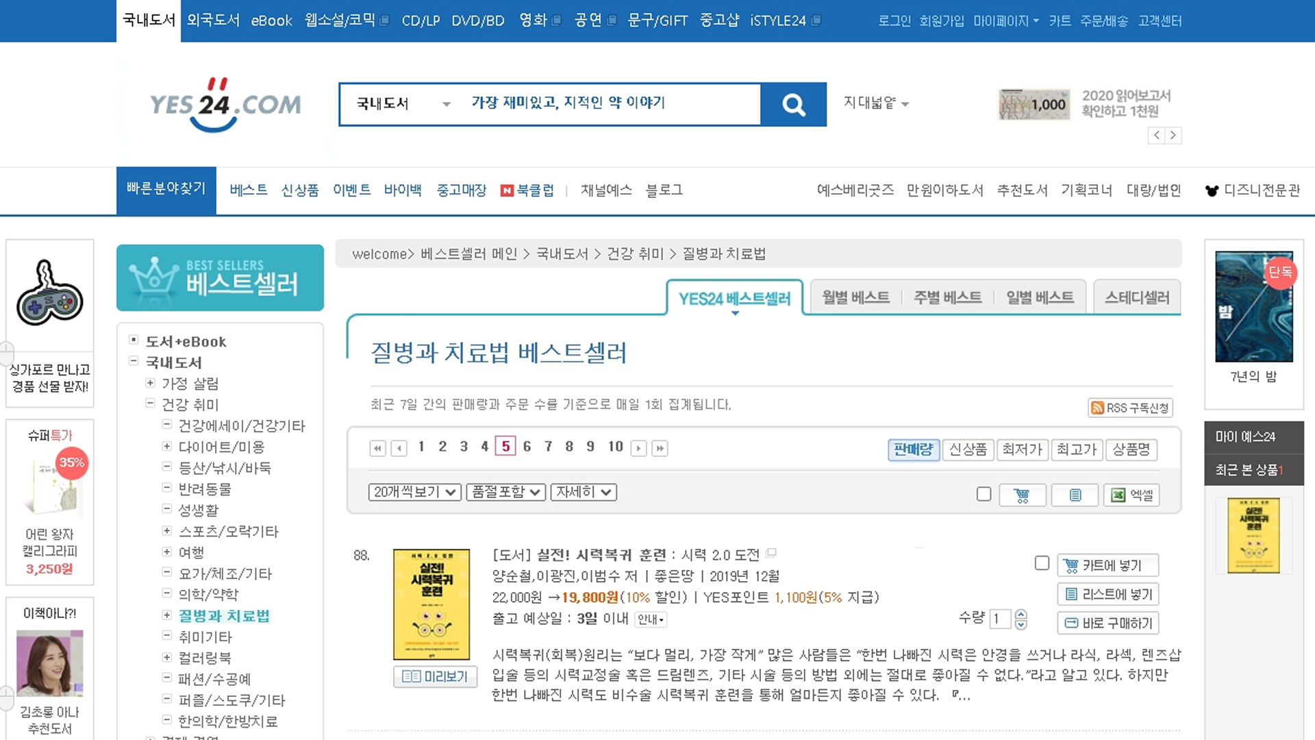 실전!시력복귀훈련 예스24 2020년 12월 1주 3일 질병과치료법 관련 주간 베스트셀러 88위