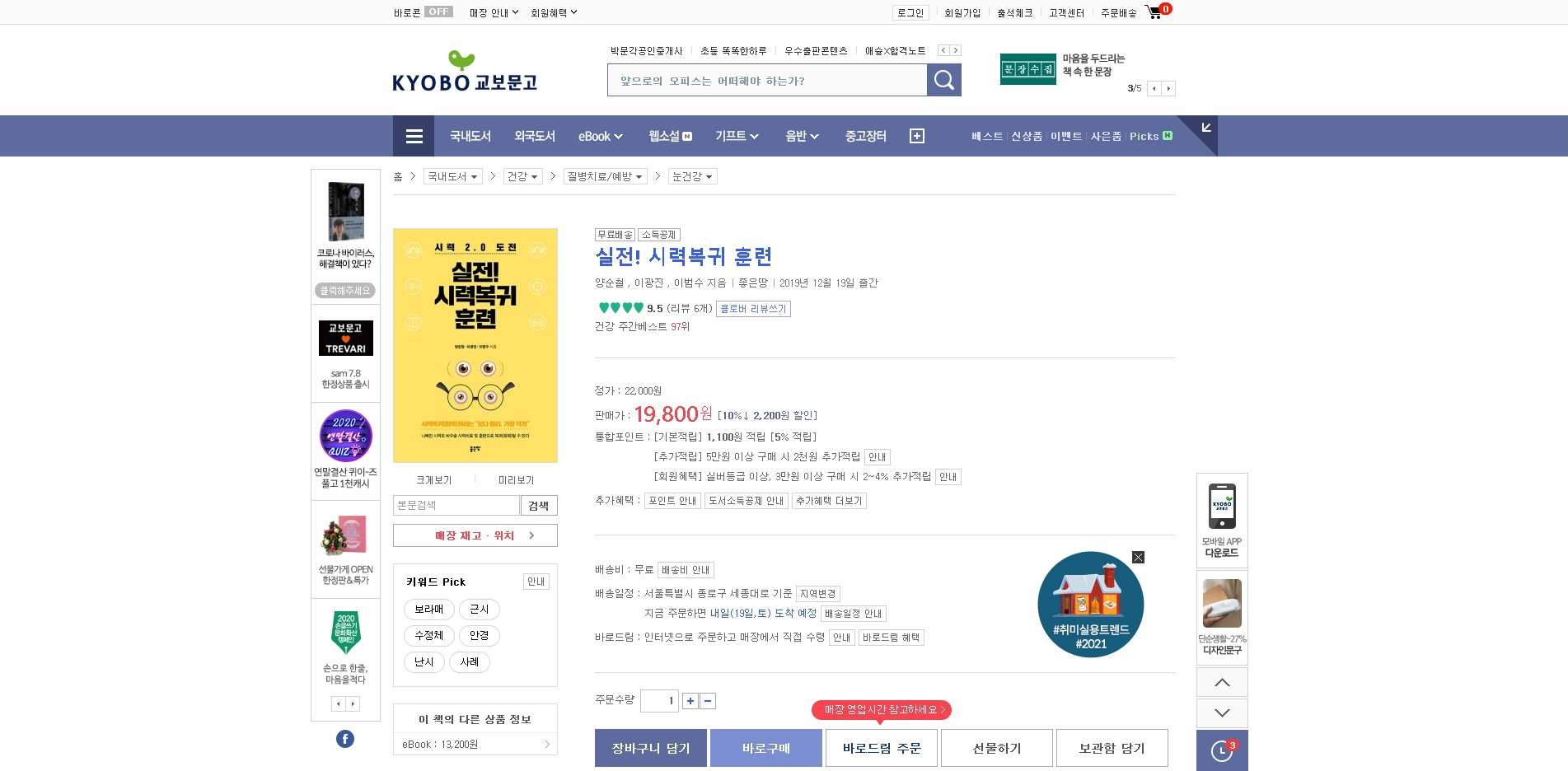 교보문고에서 실전!시력복귀훈련을 구매하시는 분은 아래링크를 참고 하시면 됩니다.