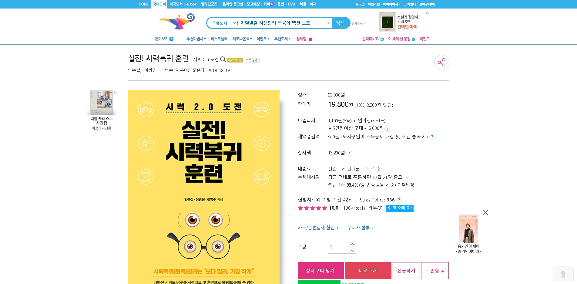 알라딘에서 실전!시력복귀훈련을 구매하시는 분은 아래링크를 참고 하시면 됩니다.