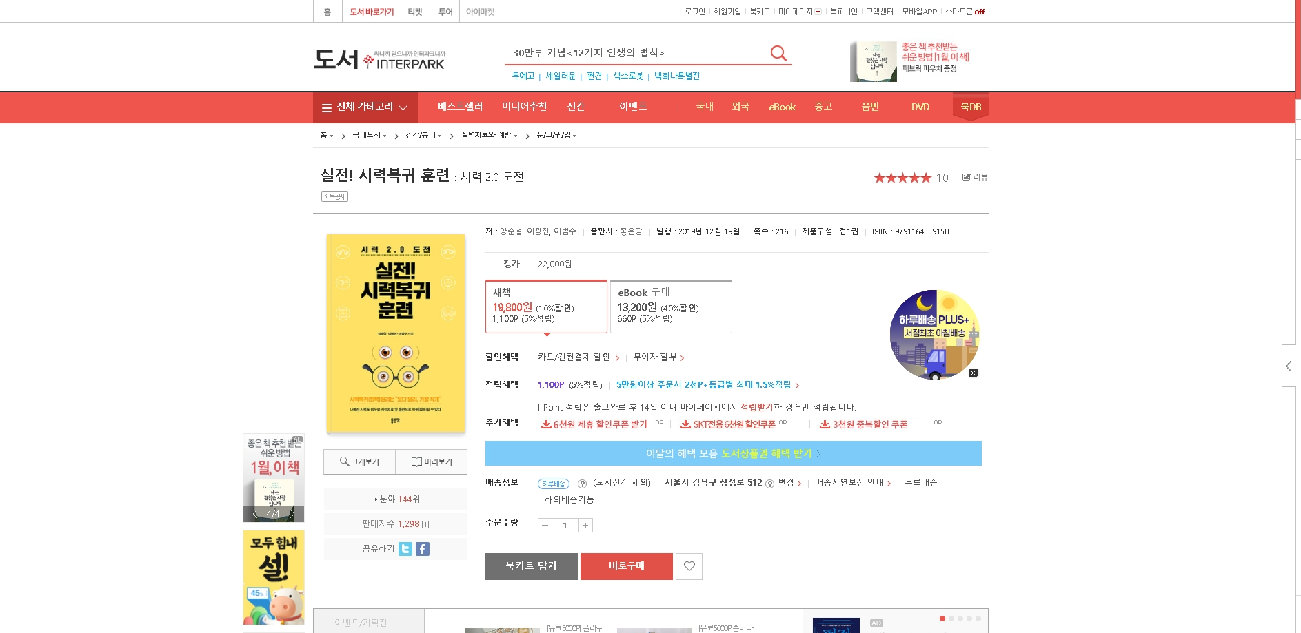 인터파크에서 실전!시력복귀훈련을 구매하시는 분은 아래링크를 참고 하시면 됩니다.