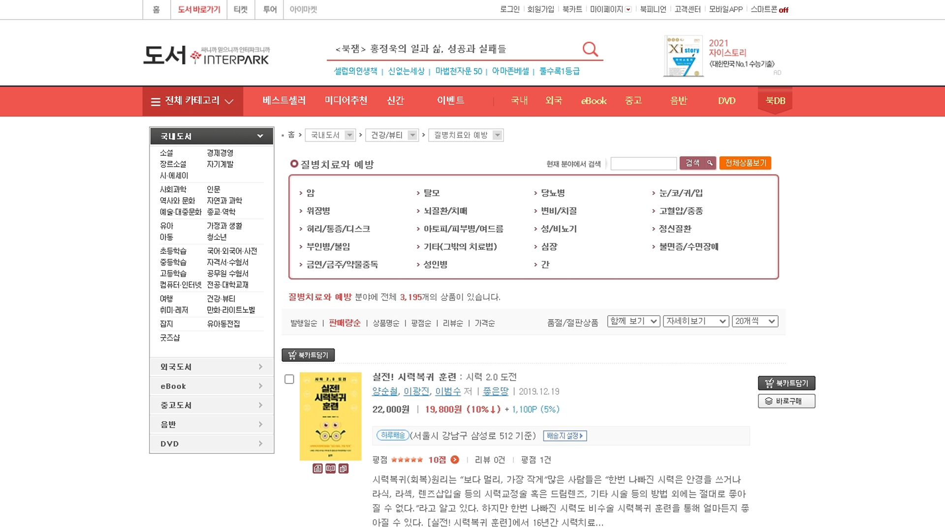 실전시력복귀훈련 인터파크 2021년 2월 1주 3일 질병치료와예방 베스트셀러 82위