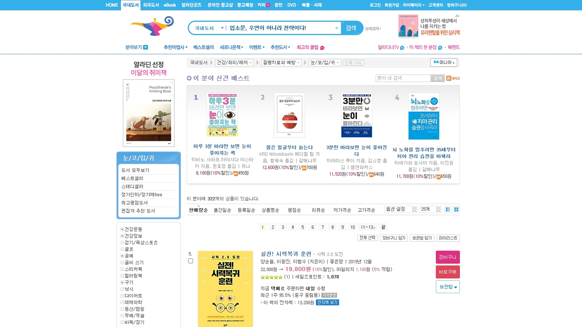[베스트셀러]실전시력복귀훈련 알라딘 베스트셀러 2021년 2월 1주 7일 눈/코/입/귀 5위, 질병치료와예방 63위-눈 시력좋아지는법/눈운동/눈좋아지는법/온가족이 함께 하는 시력복귀(회복)훈련