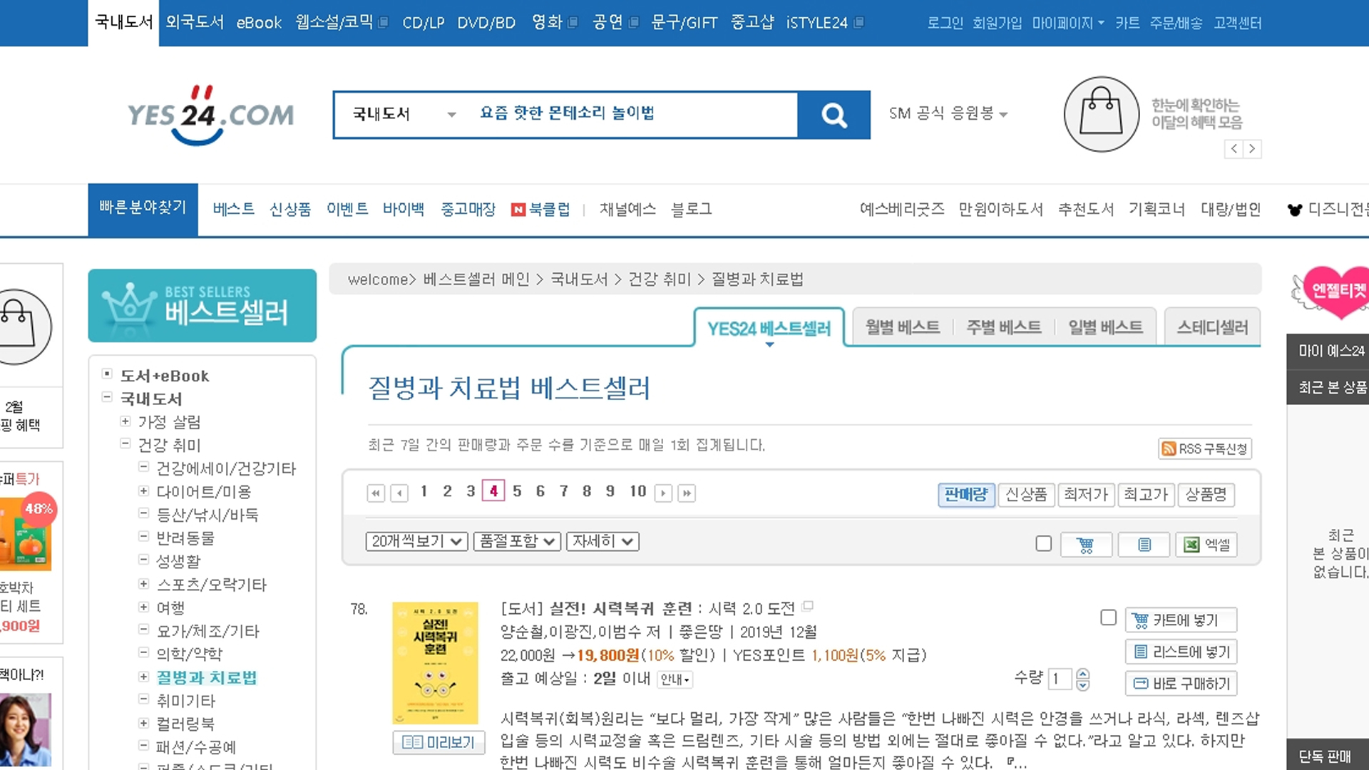실전시력복귀훈련 예스24 베스트셀러 2021년 2월 8일 질병과치료법 주간 베스트 78위