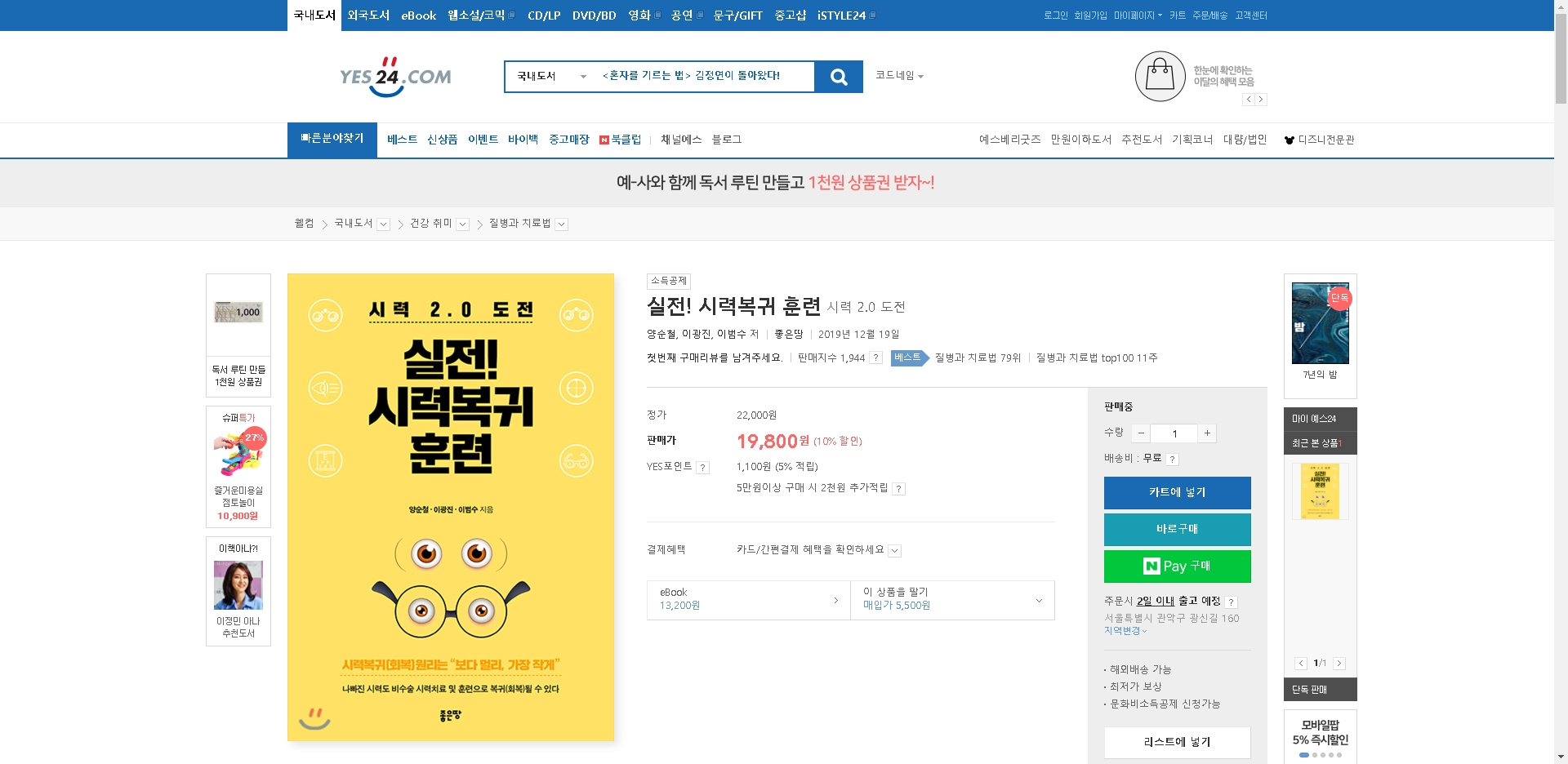 예스24에서 실전!시력복귀훈련을 구매하시는 분은 아래링크를 참고 하시면 됩니다.
