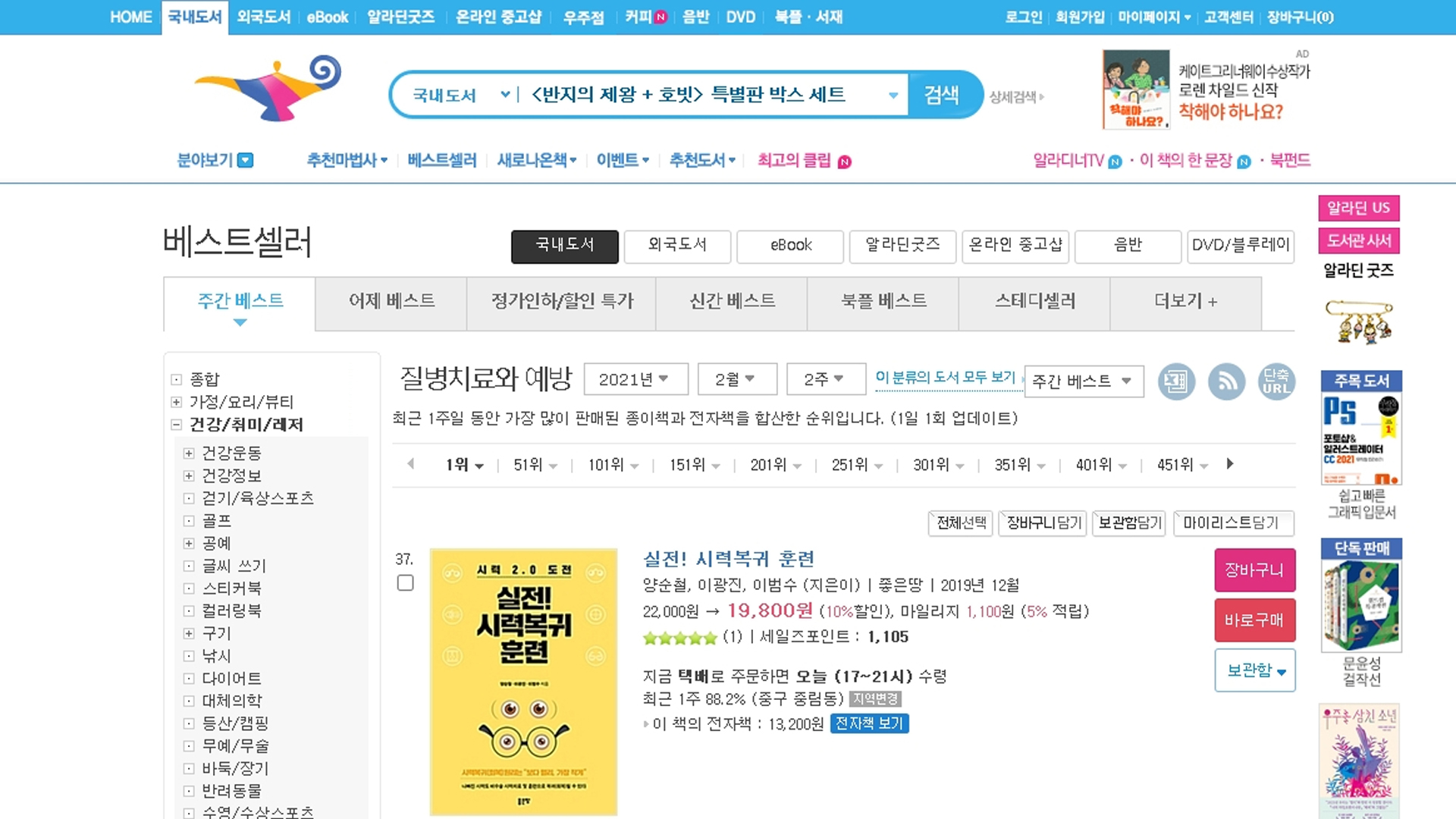 실전시력복귀훈련 알라딘 베스트셀러 2021년 2월 2주 9일 질병치료와예방 37위