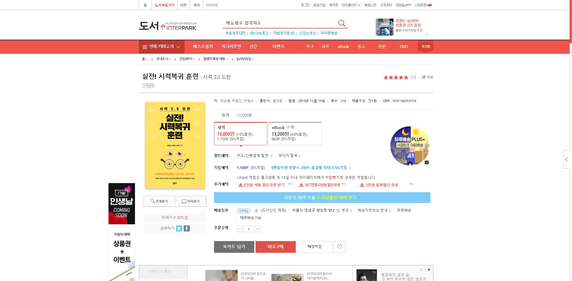인터파크에서 실전!시력복귀훈련을 구매하시는 분은 아래링크를 참고 하시면 됩니다.