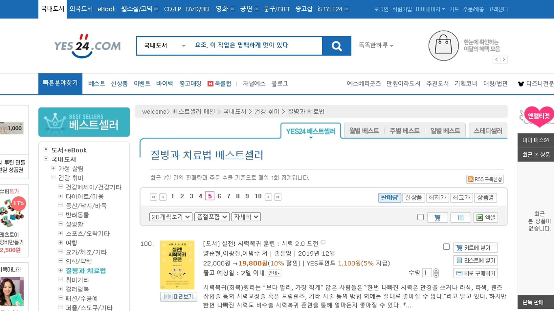 실전시력복귀훈련 예스24 베스트셀러 2021년 2월 2주 16일 질병과치료법 주간 베스트 100위