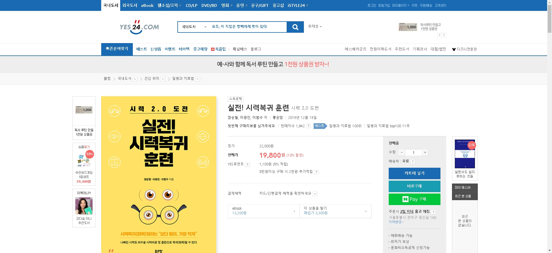 예스24에서 실전!시력복귀훈련을 구매하시는 분은 아래링크를 참고 하시면 됩니다.