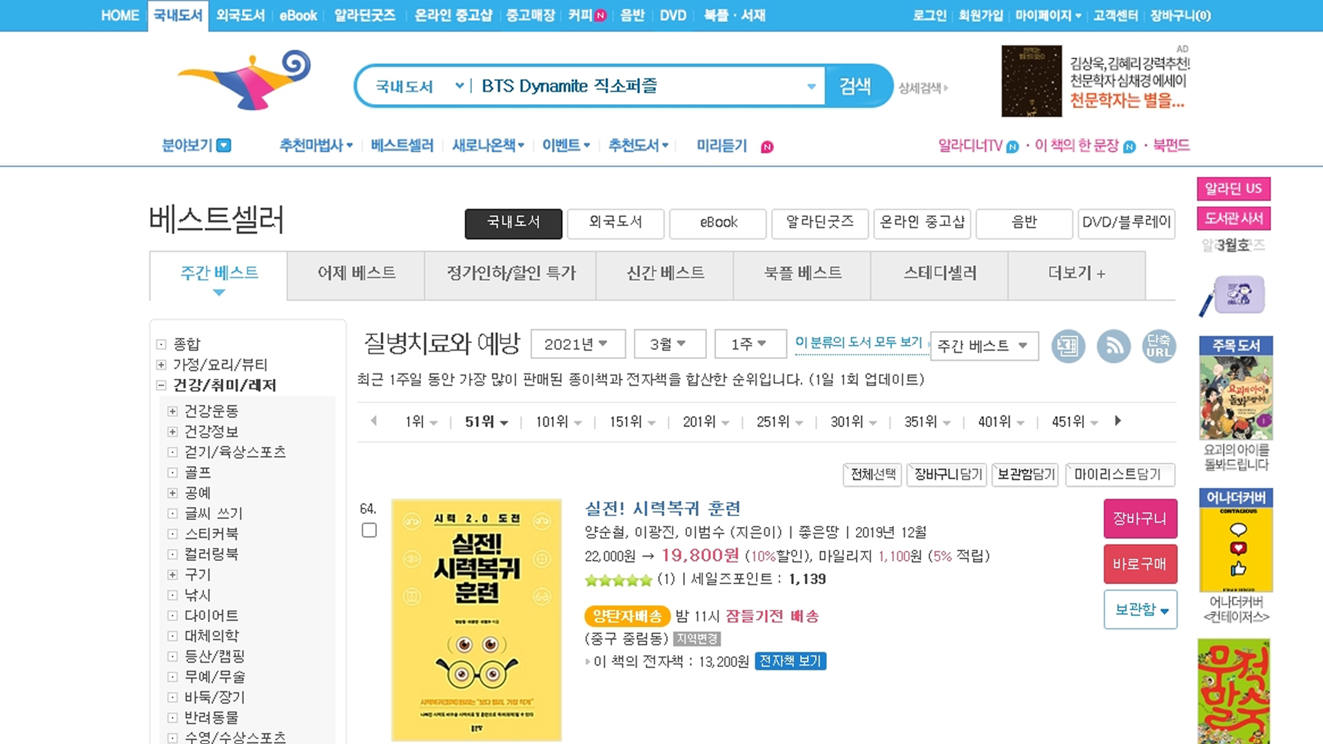 실전시력복귀훈련 알라딘 베스트셀러 2021년 3월 1주 4일 질병치료와예방 64위