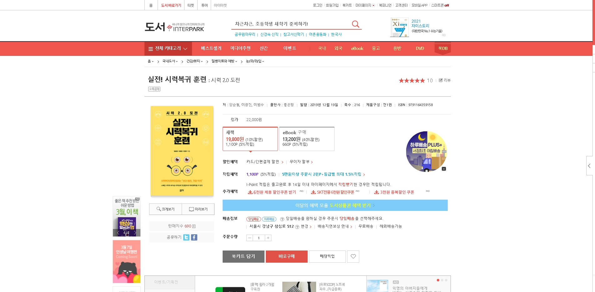 실전시력복귀훈련 인터파크 베스트셀러 2021년 3월 1주 4일 질병치료와예방 200위