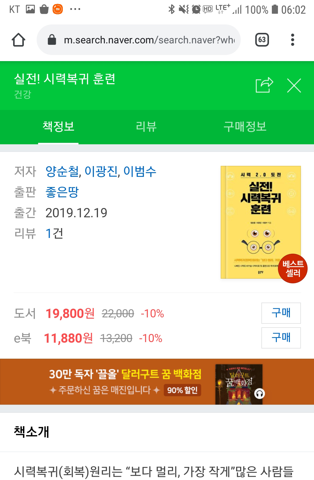 네이버 책 및 도서11번가에서 실전!시력복귀훈련을 구매하시는 분은 아래링크를 참고 하시면 됩니다.
