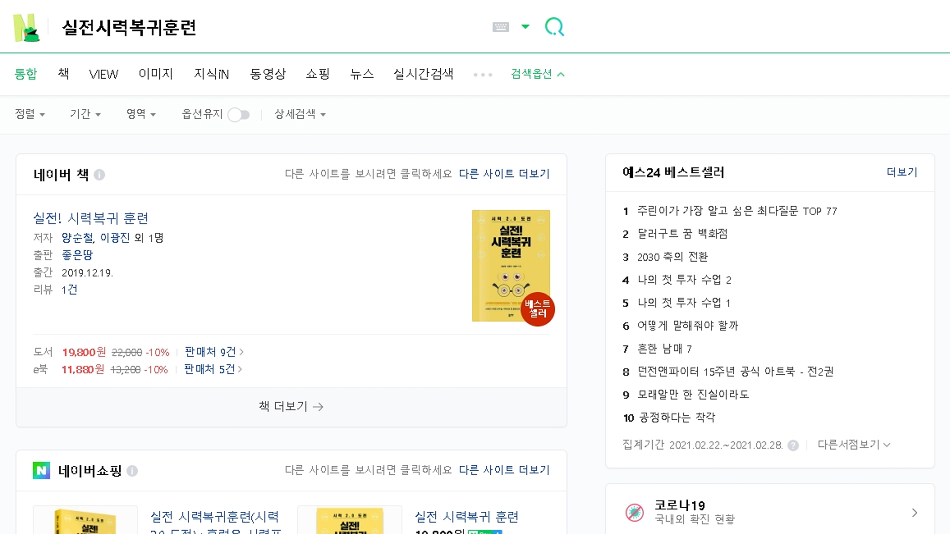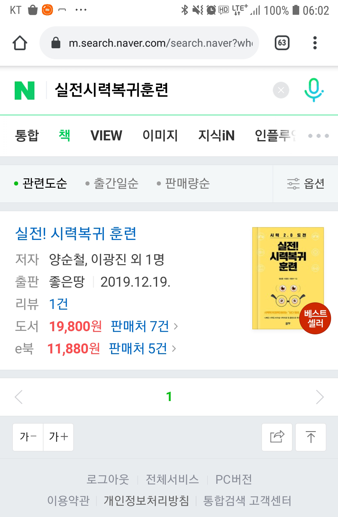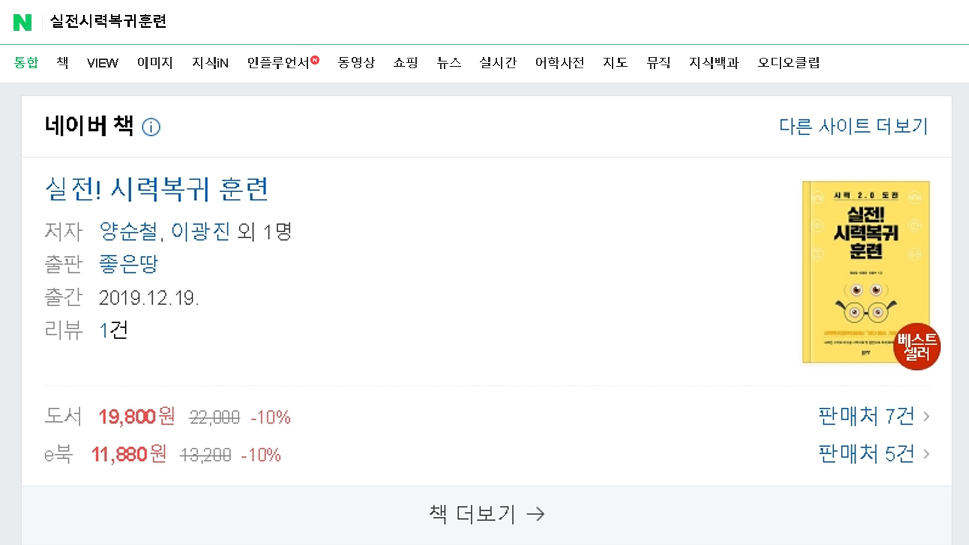 네이버 책에서 실전시력복귀훈련을 검색하시면 베스트셀러 마크가 달린 실전시력복귀훈련을 보실 수 있습니다.