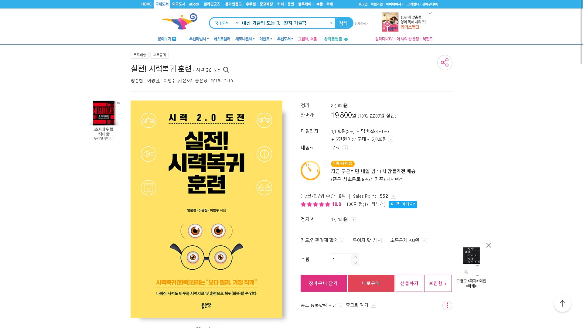 실전 시력복귀 훈련 (시력 2.0 도전)+훈련용 시력표 : 램프요정지니몰