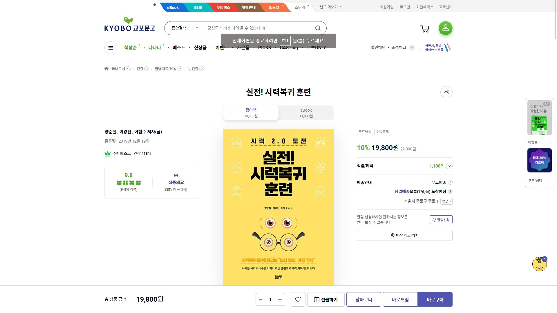 ◆ 우리가족 시력복귀 필독서 책 “실전! 시력복귀 훈련”